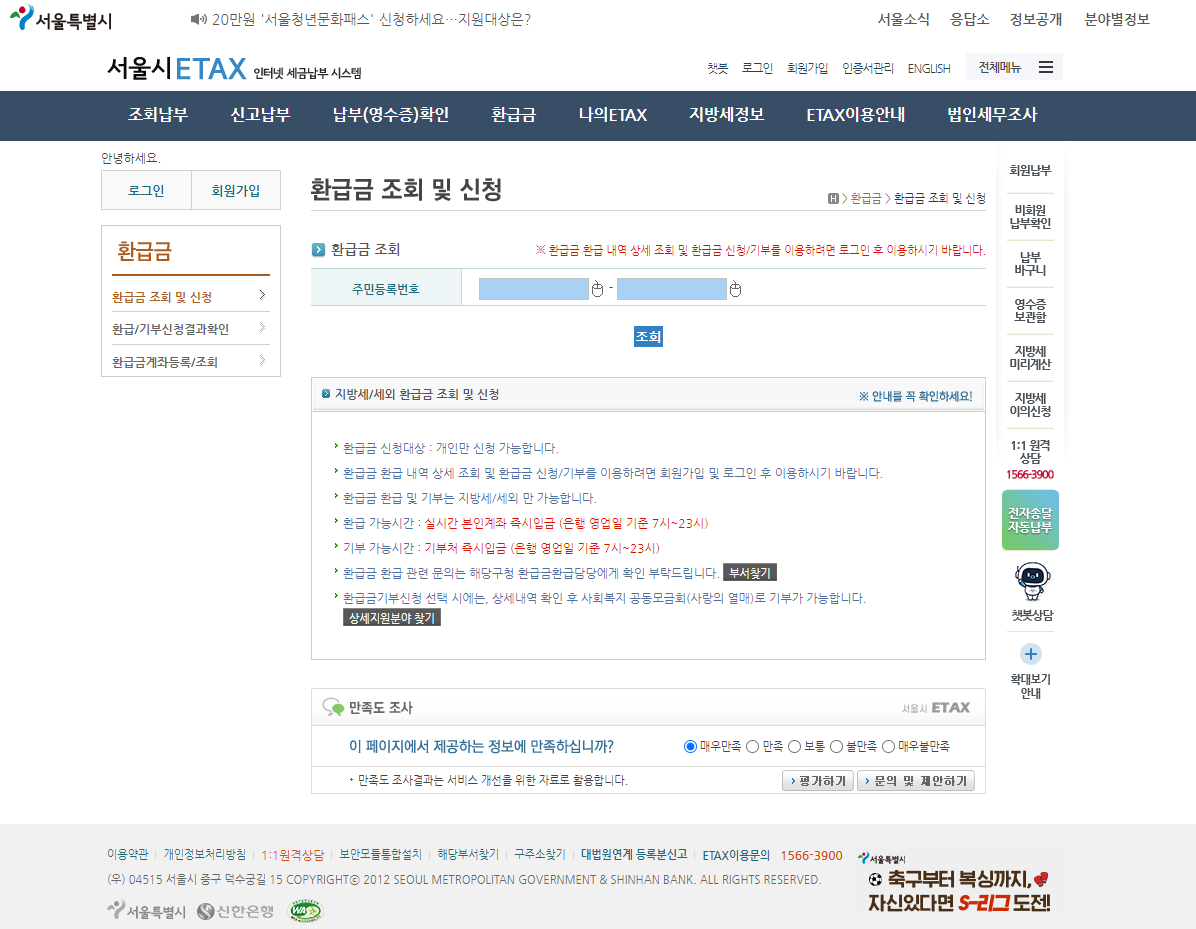 • 서울시 ETAX 환급금 신청 방법 - 로그인 필수
