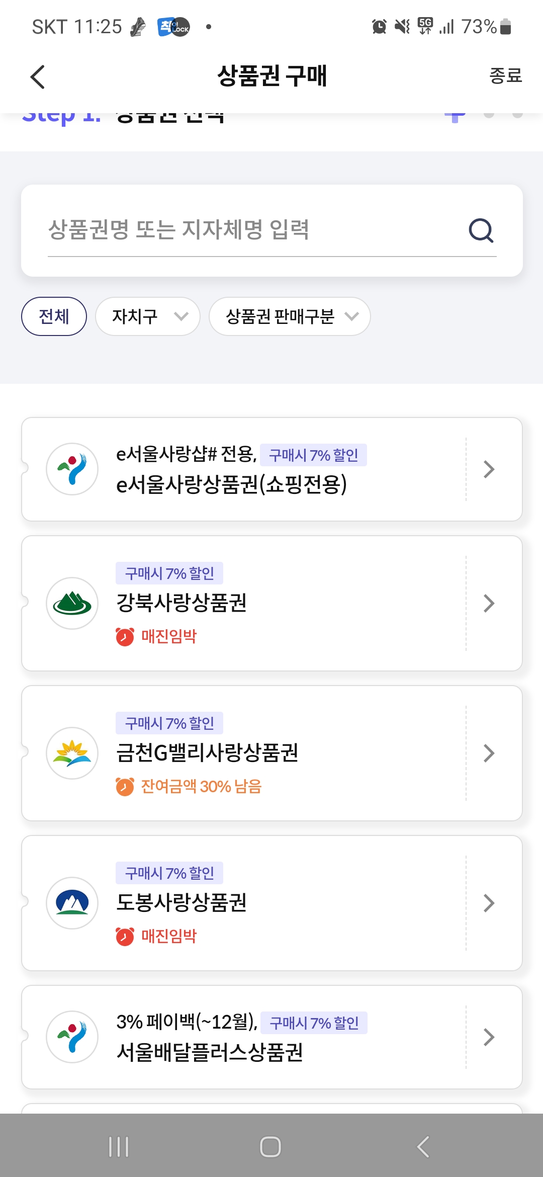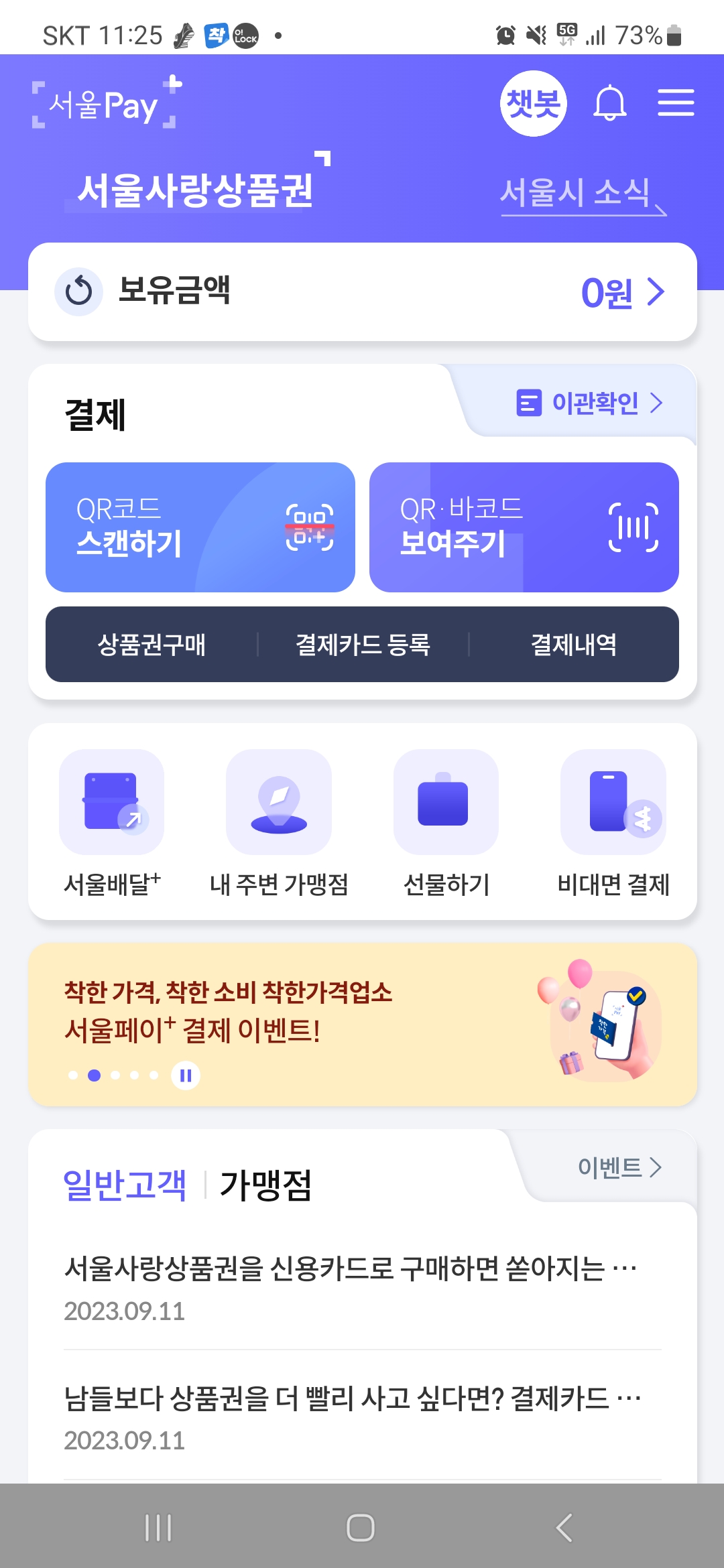 서울페이 앱에서는 아래와 같이 상품권 구매로 들어가서 해당 판매 시간에 구매하실 수 있습니다.