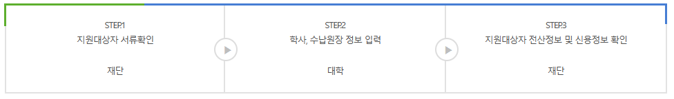 심사는 지원대상자의 서류를 확인 후, 학사, 수납원장 정보를 대학에서 입력하면 재단에서 지원대상자 전산정보 및 신용정보를 확인하고 심사를 진행합니다.