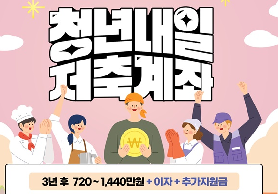 청년내일저축계좌에 가입하고 매월 10만 원 이상 적금을 넣으면, 소득에 따라 최대 30만 원의 정부 지원금을 받을 수 있으며, 3년간 최대 1080만 원을 지원받습니다.