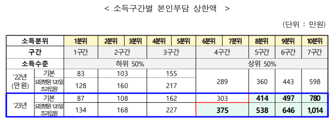 | 소득 10분위 | 584만 원 | 23만 5,970원 초과 | 24만 6,970원 초과 |